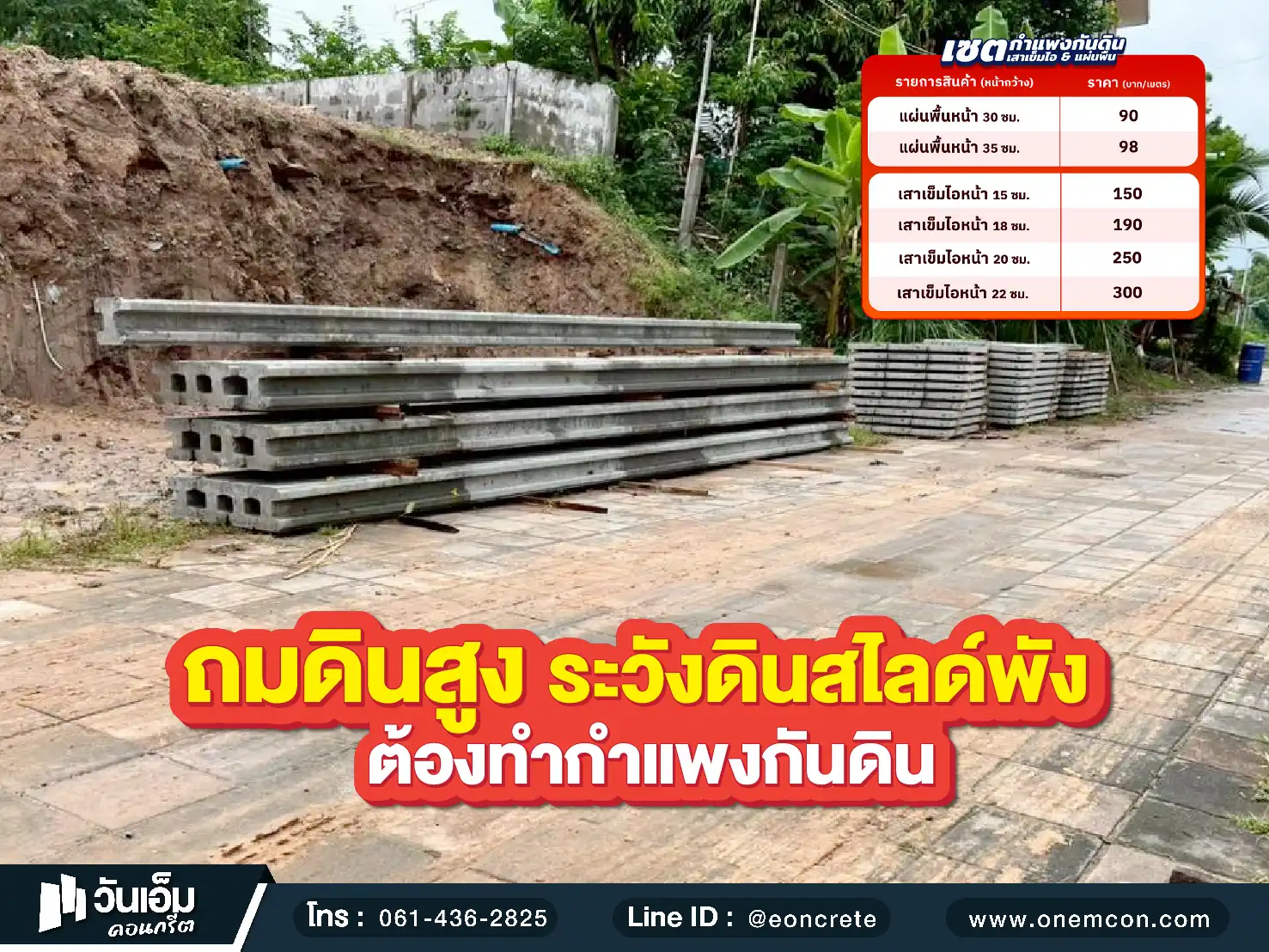 - Line ID : @eoncrete - รับผลิตและจำหน่าย : #เสาเข็มไอ #แผ่นพื้น #เสารั้ว คุณภาพดี ราคาถูก