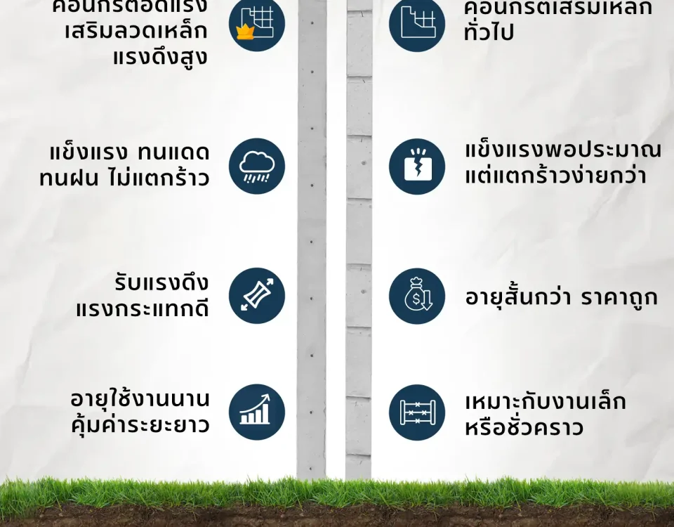 - ตัวอย่างติดตั้งเสาแบบหล่อฟุตติ้งสำเร็จรูป